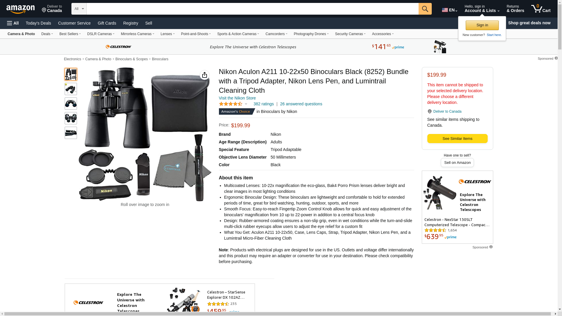 | Feature | ACULON A211 10-22x50 Zoom binoculars are designed to be as light as possible along with excellent ergonomics. |