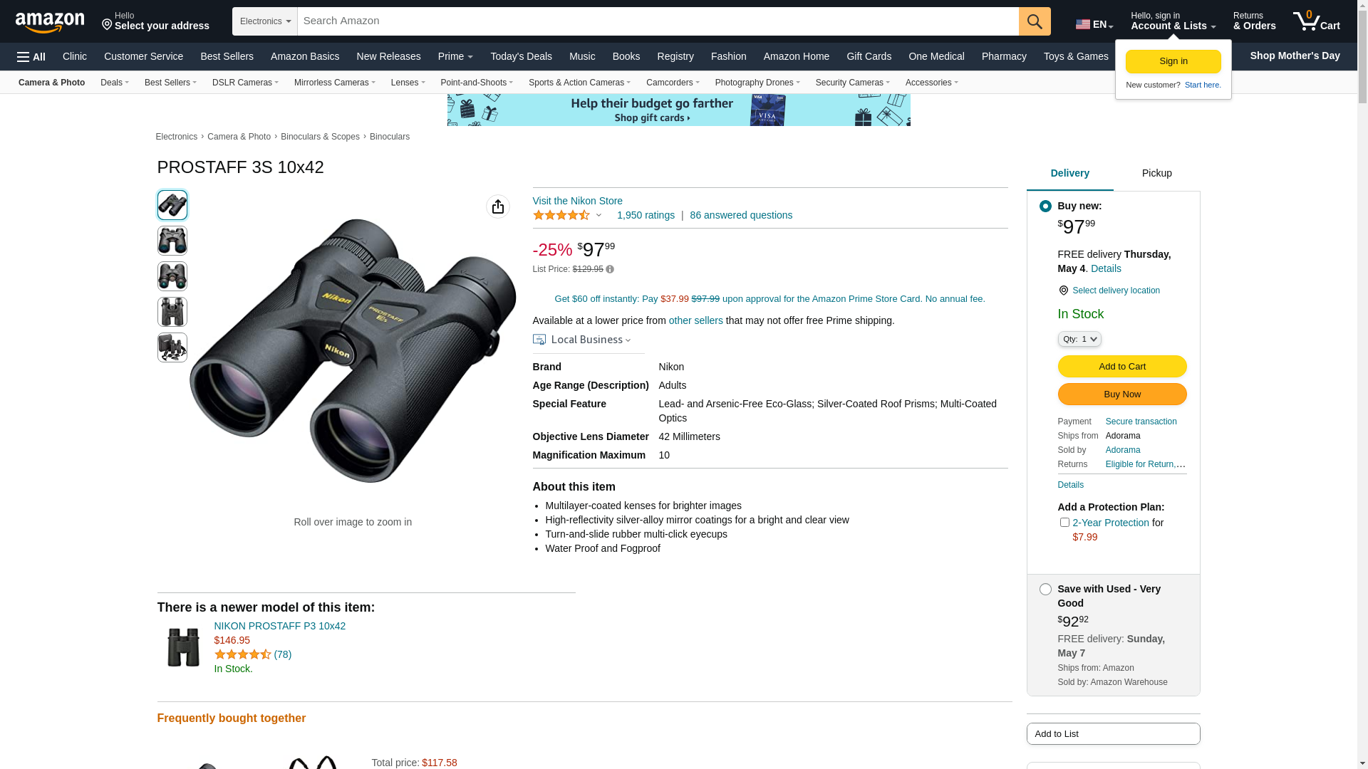 Nikon 10x42 ProStaff 3S Binoculars (Black)