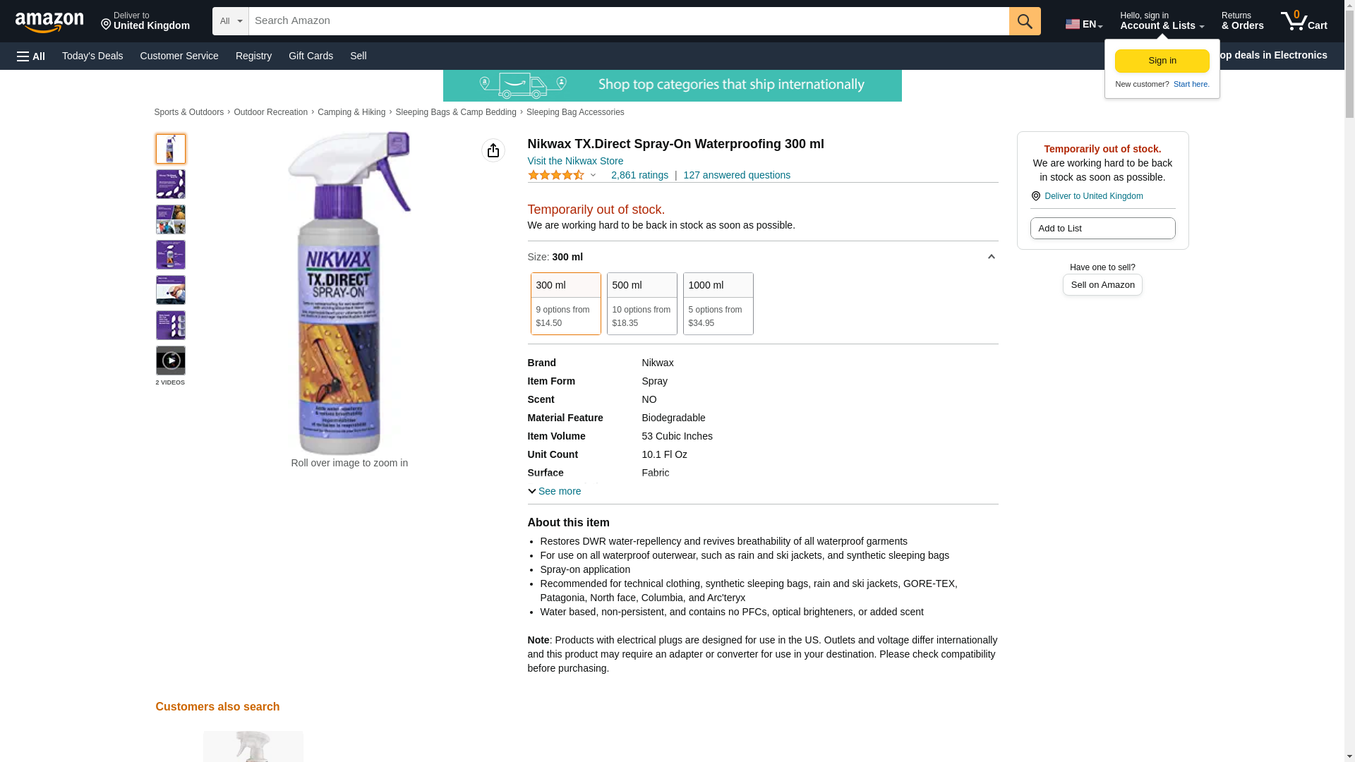 Nikwax TX.Direct Spray-On Waterproofing 300 ml