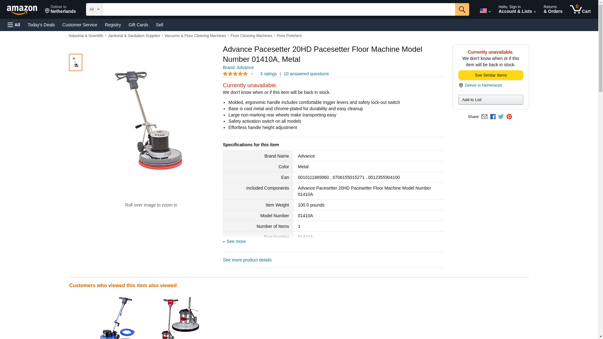 Advance Pacesetter 20HD Pacesetter Floor Machine Model Number 01410A, Metal