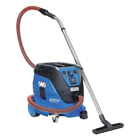 Nilfisk Attix 33-21, 8 Gallon wet/dry vacuum, was built with real working applications in mind to deliver high performance, increased productivity and lower maintenance costs. InfiniClean filter cleaning technology automatically cleans the filter every 15 seconds to keep the working environment dust free. This dust extractor packs high suction power, provides optimal safety and maximum filtration, all while including several other user benefits designed to meet tough requirements in building and construction and other industries. The Attix 33-21 is reliable and simple to use with safe and ergonomic dust disposal to complete the job.