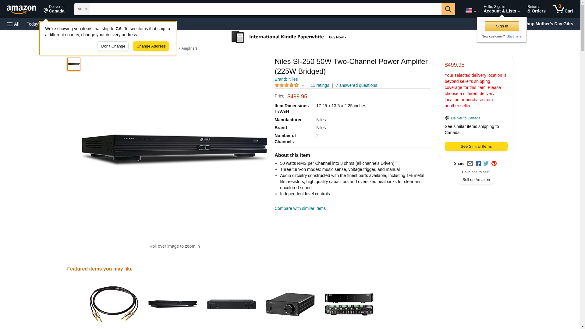 Niles SI-250 50W Two-Channel Power Amplifer (225W Bridged)