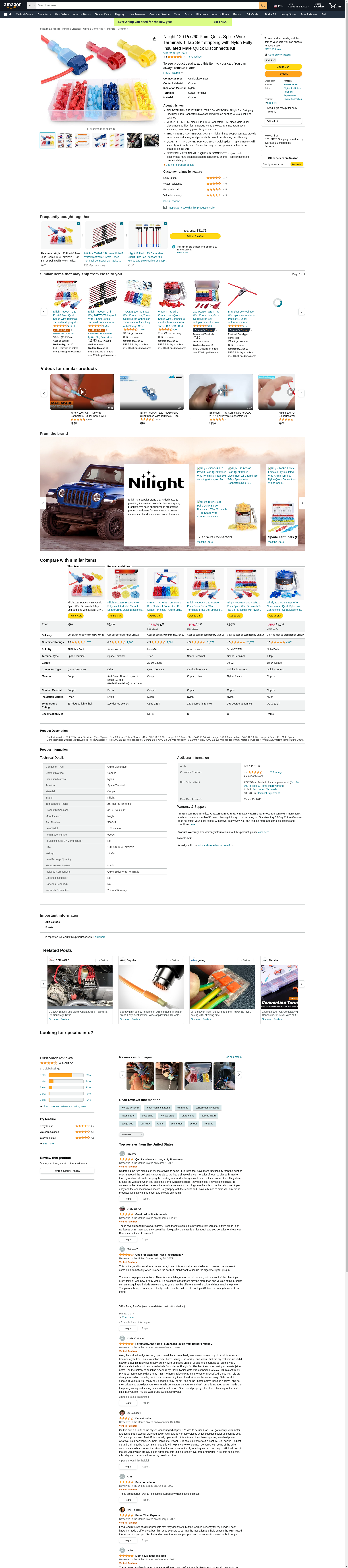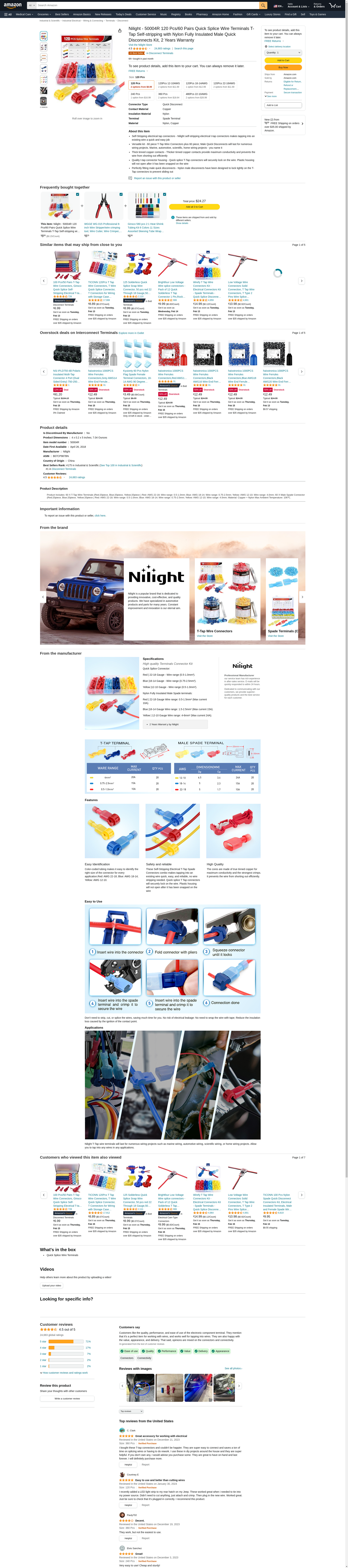 | Feature | SELF-STRIPPING ELECTRICAL TAP CONNECTORS - Nilight Self Stripping Electrical T Tap Connectors Makes tapping into an existing wire a quick and easy job |