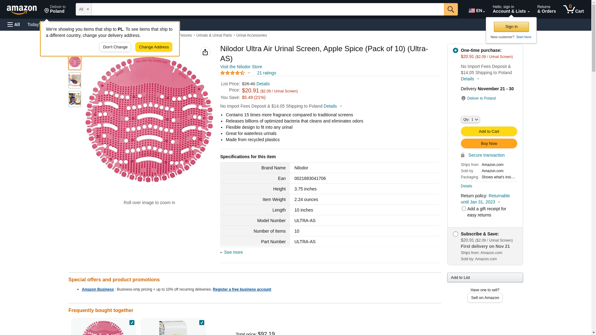 Nilodor Ultra Air Urinal Screen, Apple Spice (Pack of 10) (Ultra-AS)