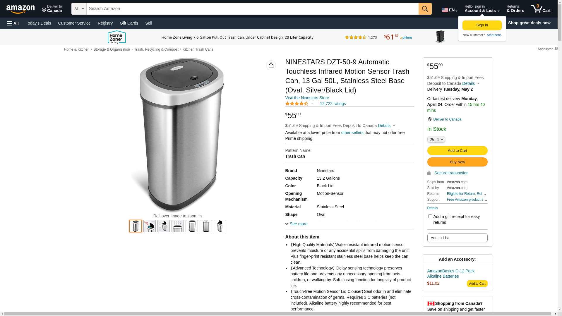 - 【Touch-free Motion Sensor Lid Clouser】Seal odor in and eliminate cross-contamination of germs. Requires 3 C batteries (not included), Alkaline battery highly recommended for best performance.