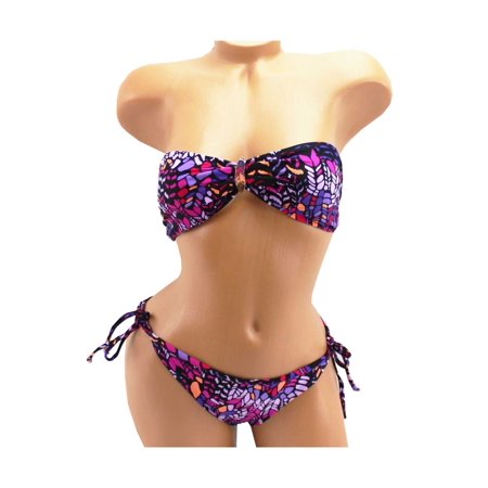 Ninety Nine Junior Strapless Purple 2 Pieces Bathing Suit Large Bikini Set