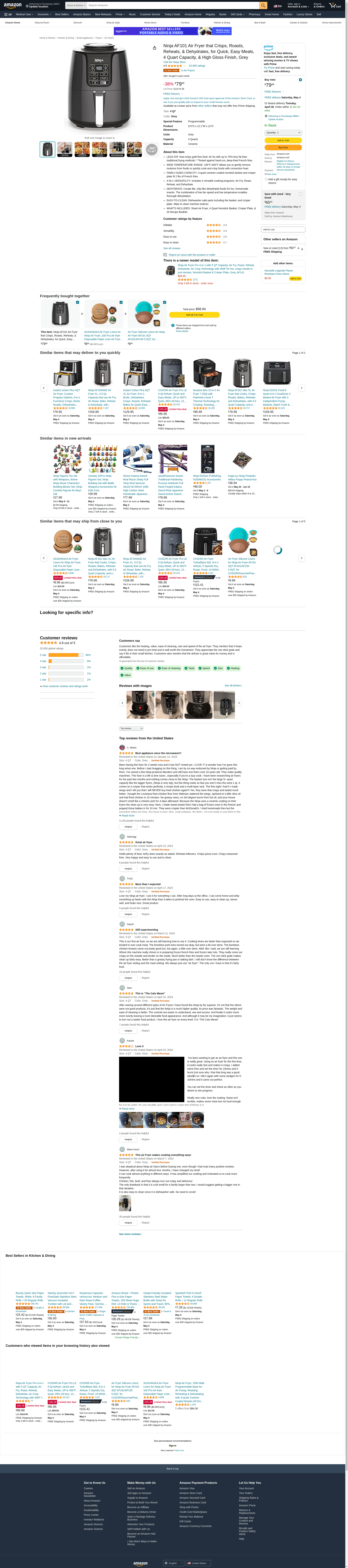 Ninja AF101 Air Fryer that Crisps, Roasts, Reheats, & Dehydrates, for Quick, Easy Meals, 4 Quart Capacity, & High Gloss Finish, Grey