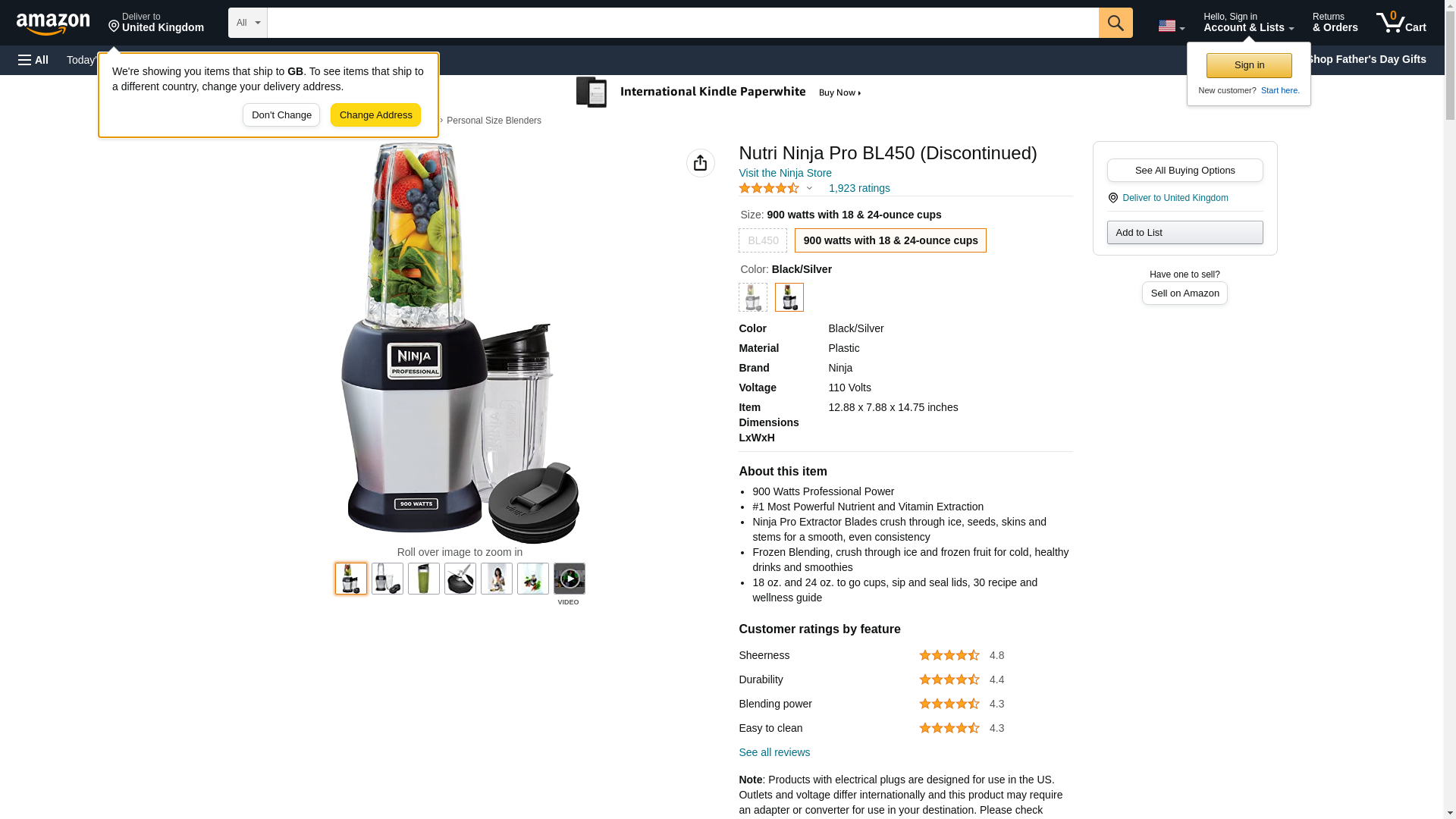 Ninja Pro Personal Blender with 900 Watt Base and Vitamin and Nutrient Extraction for Shakes and Smoothies with 18 and 24-Ounce Cups (BL450)