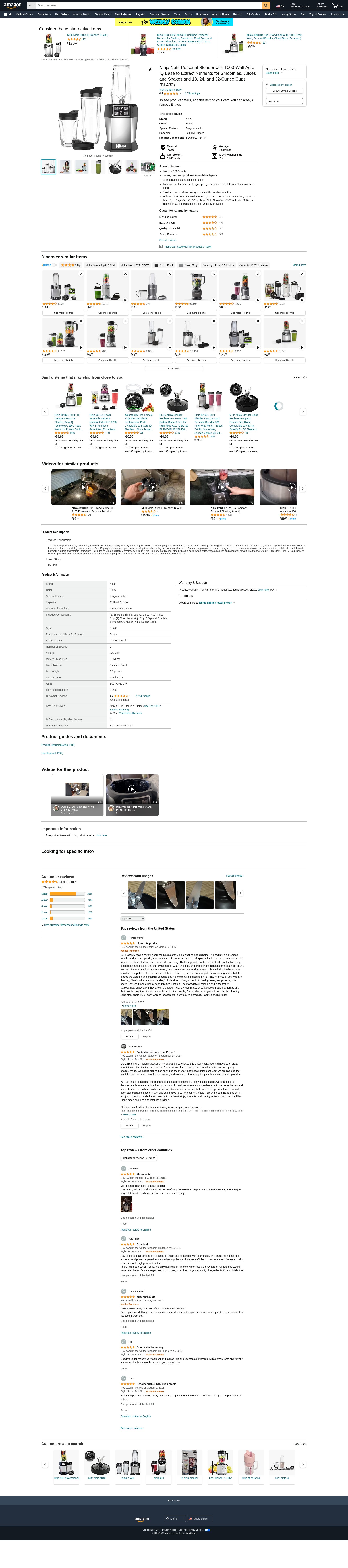 - Includes: 1000-Watt Base with Auto-iQ, (1) 18 oz. Tritan Nutri Ninja Cup, (1) 24 oz. Tritan Nutri Ninja Cup, (1) 32 oz. Tritan Nutri Ninja Cup, (2) Spout Lids, 30-Recipe Inspiration Guide, Instruction Book, Quick Start Guide