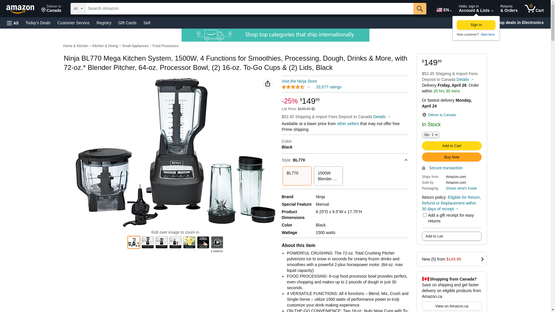 Ninja BL770AMZ Mega Kitchen System, 72 oz. Pitcher, 8-Cup Food Processor, 16 oz. Single Serve Cup, 1500-Watt, Black