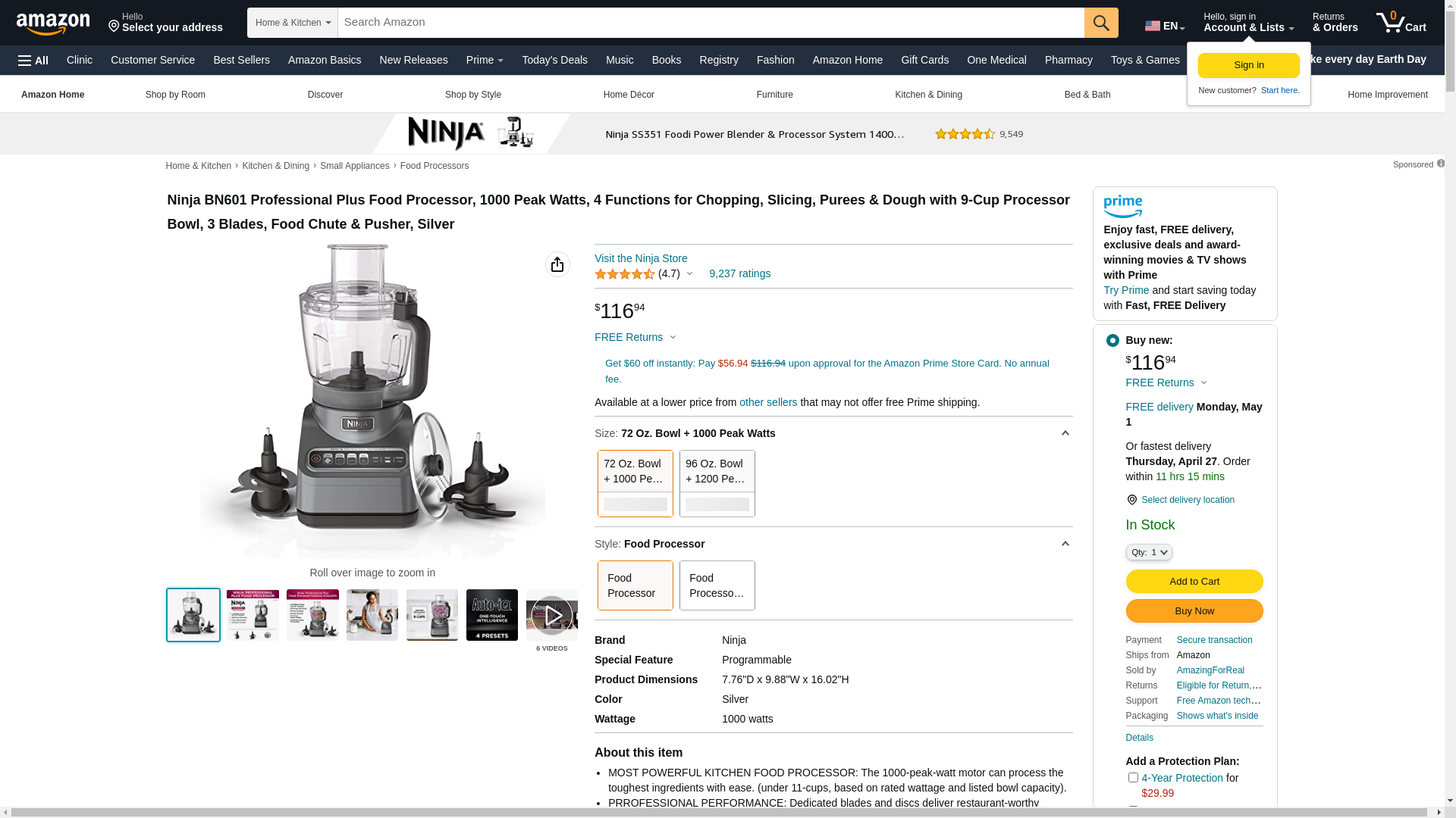 Ninja Professional Food Processor, 1000 Peak Watts, 9-Cup Capacity, Auto-iQ Preset Programs Silver BN601 - Best Buy