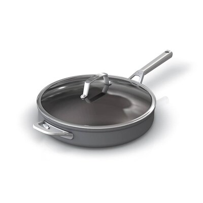 Ninja C30140 Foodi NeverStick Premium Hard-Anodized 4-Quart Sauté Pan with Glass Lid, Nonstick, Durable & Oven Safe to 500°F, Salt Grey