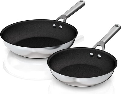 - WHAT'S INCLUDED: Easy-to-clean stainless nonstick small 8-inch fry pan and medium 10.25-inch fry pan.