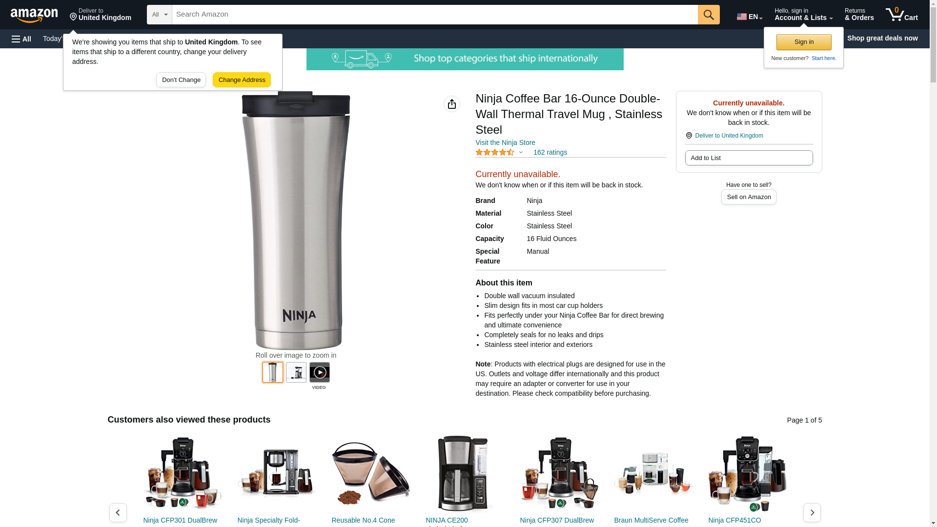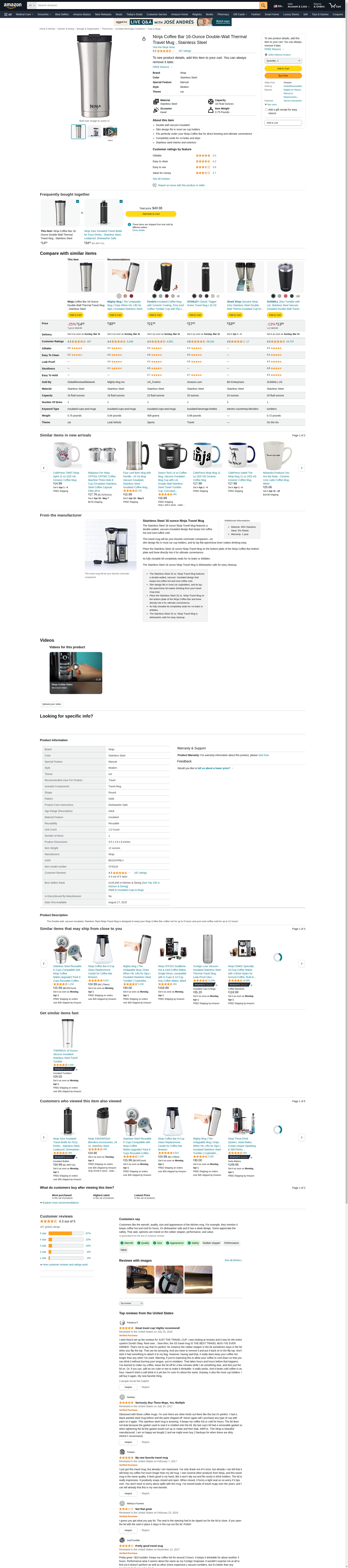 Ninja Coffee Bar 16-Ounce Double-Wall Thermal Travel Mug , Stainless Steel