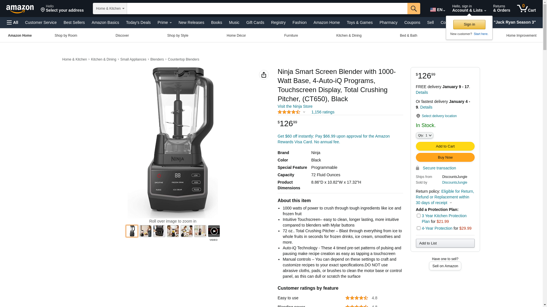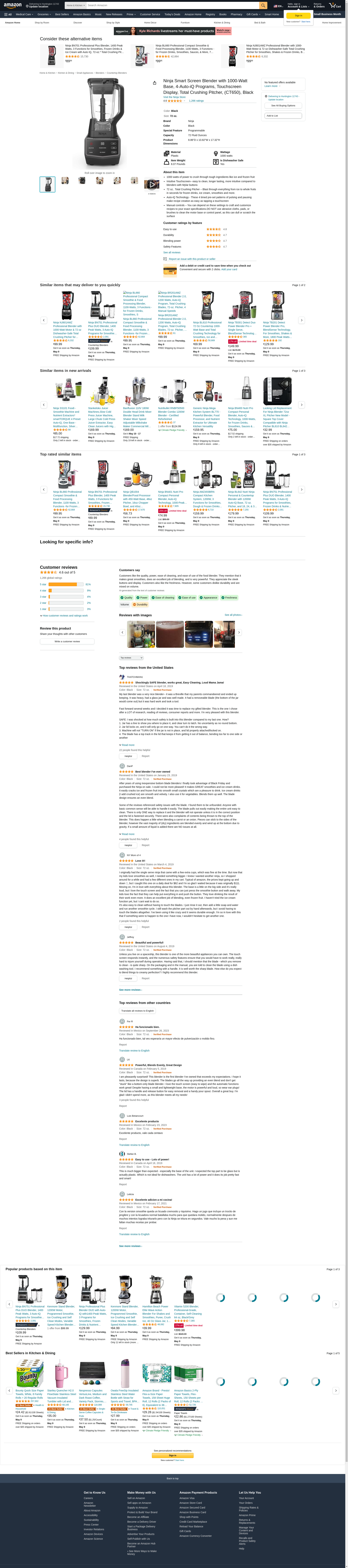 Ninja Smart Screen Blender with 1000-Watt Base, 4-Auto-iQ Programs, Touchscreen Display, Total Crushing Pitcher, (CT650), Black