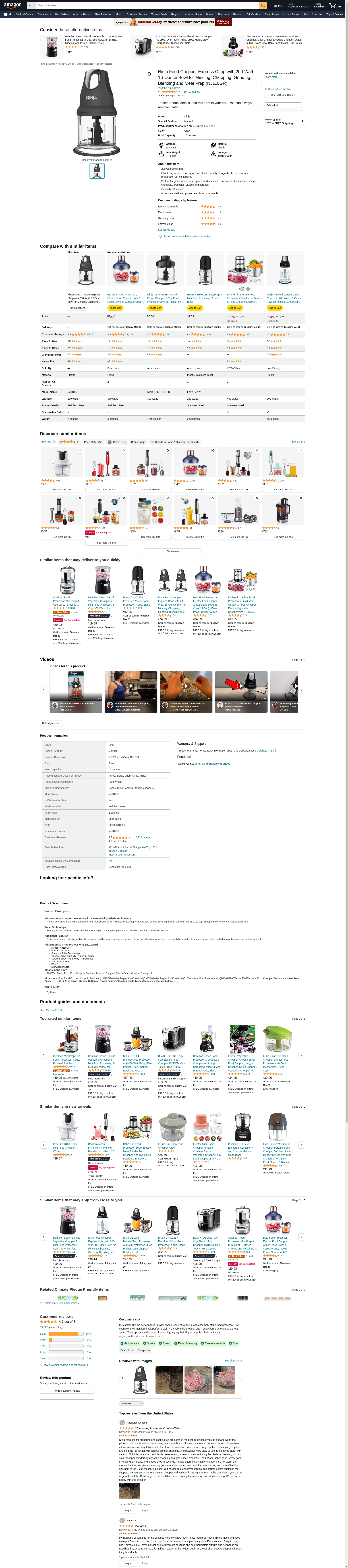 Ninja Food Chopper Express Chop with 200-Watt, 16-Ounce Bowl for Mincing, Chopping, Grinding, Blending and Meal Prep (NJ110GR)