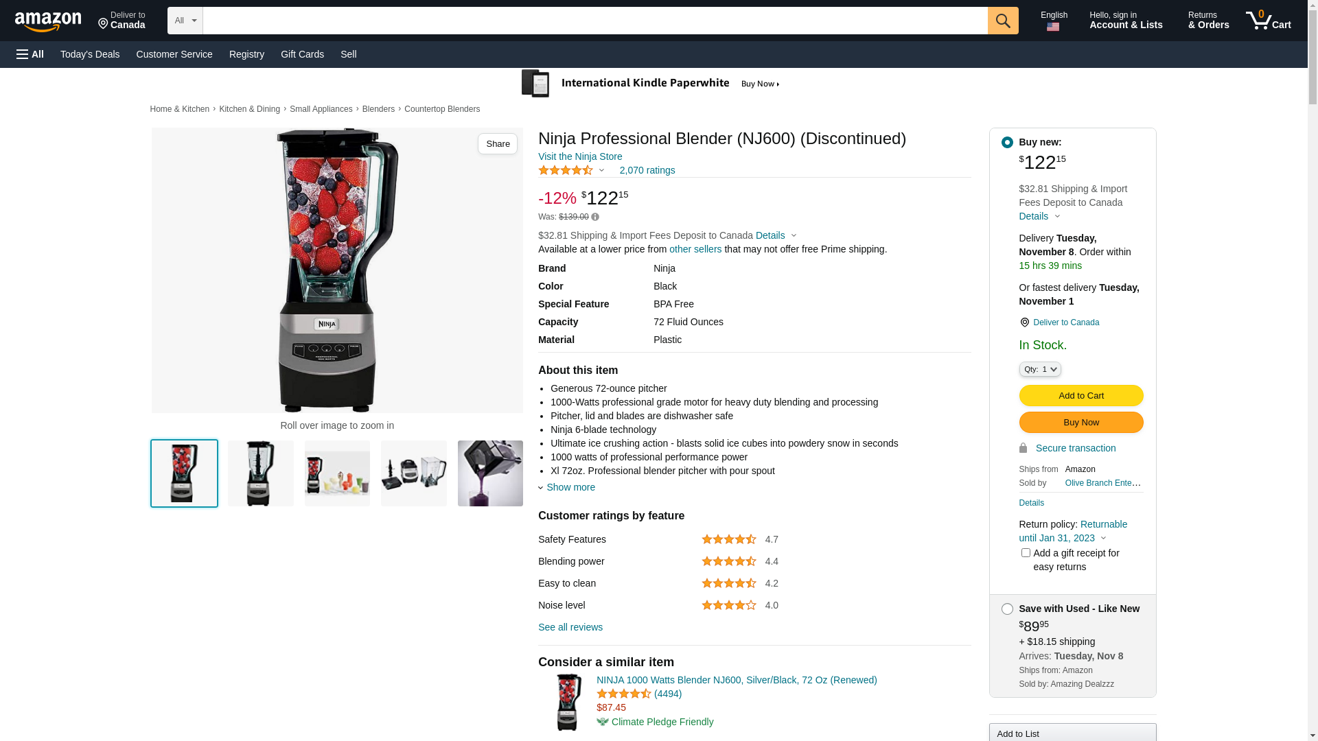 Ninja NJ600 Professional Blender ( Renewed )