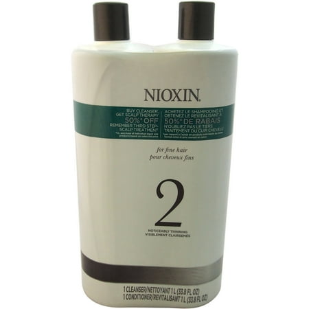 <b>System 2 Cleanser & Scalp Therapy Conditioner Duo by Nioxin for Unisex, 33.8 oz:</b> <ul> <li>Bioamp adds thickness and strengthens the hair shaft</li> <li>Unique scalp-access delivery system helps protect nutrients as they nourish the scalp and hair</li> </ul>