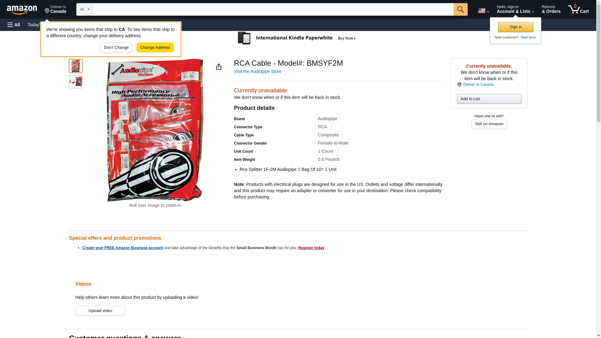 RCA Cable - Model#: BMSYF2M