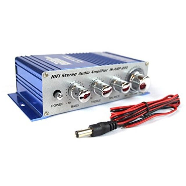 Power: 20W Max, 10W RMS. Speaker impedence: 4~16 Ohms. Frequency: 20Hz-20KHz. Volume, Bass, treble and balance controls. Dimensions: 5.25"W x 1.625"H x 2.875"D.