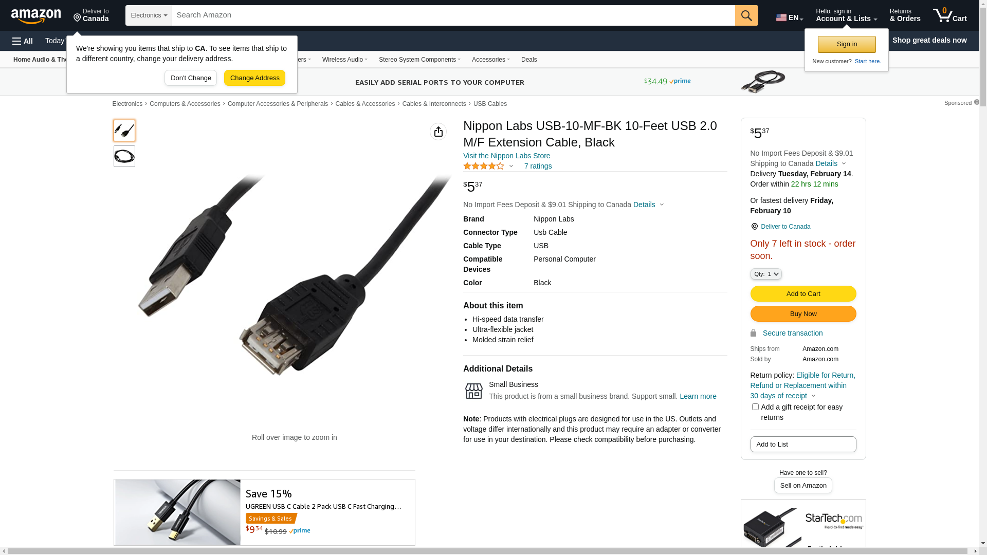 Nippon Labs USB-10-MF-BK 10-Feet USB 2.0 M/F Extension Cable, Black. Hi-speed data transfer. Ultra-flexible jacket. M...