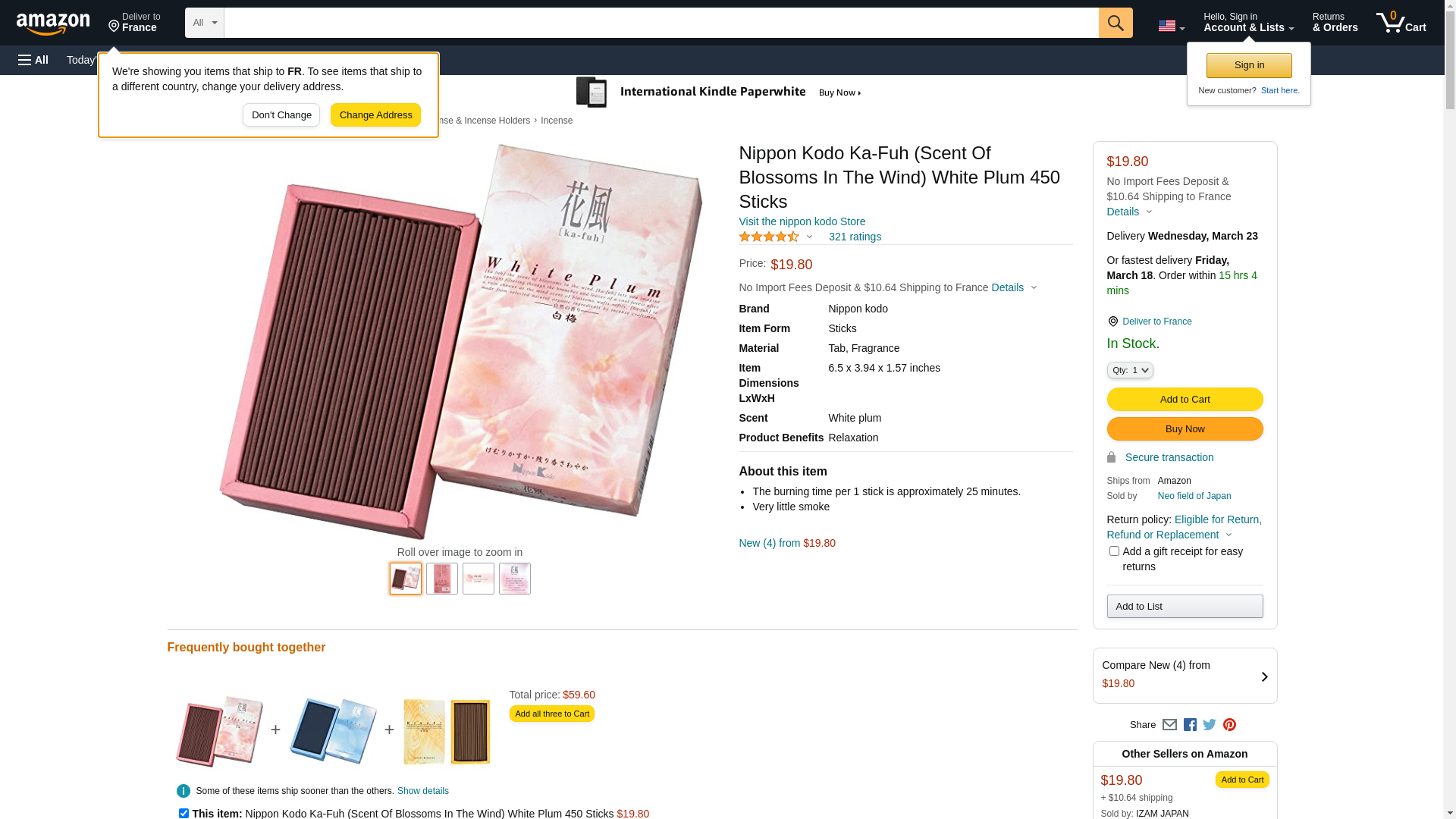 Nippon Kodo Ka-Fuh (Scent Of Blossoms In The Wind) White Plum 450 Sticks: Maxedbuy.com