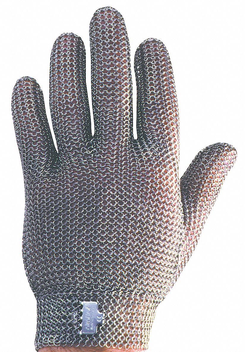 Chainmail Cut-Resistant Glove,S/7, Color Coding System Yes, Cuff Material Stainless Steel, Glove Material Stainless Steel, Cuff Color White, Glove Hand Style Ambidextrous, Series Niroflex2000, Size- Alpha S, Cuff Length Style Wrist, Size- Numeric 7, Sold As Individual, Standards USDA, EN-1082, CE, ISO 13999-1, FDA Compliant No