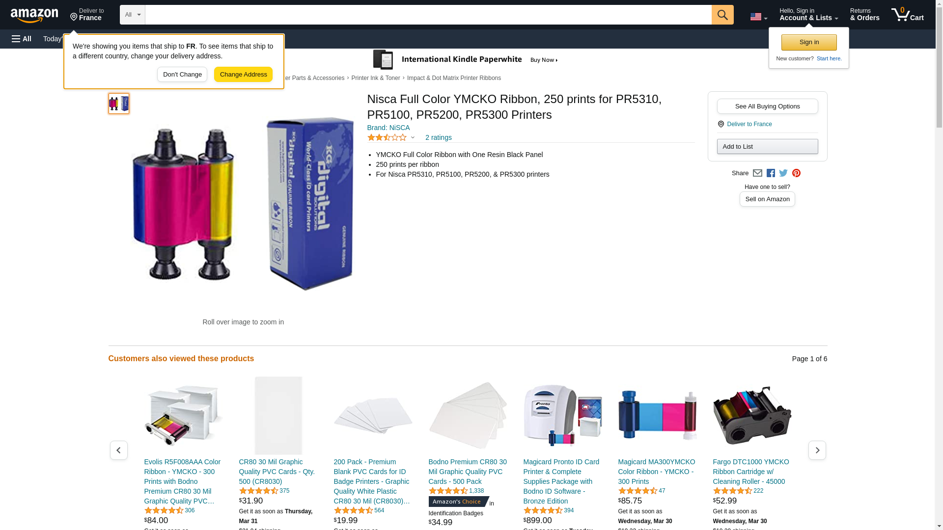Nisca Full Color YMCKO Ribbon, 250 prints for Nisca PR5310, PR5100, PR5200, PR5300 printers.