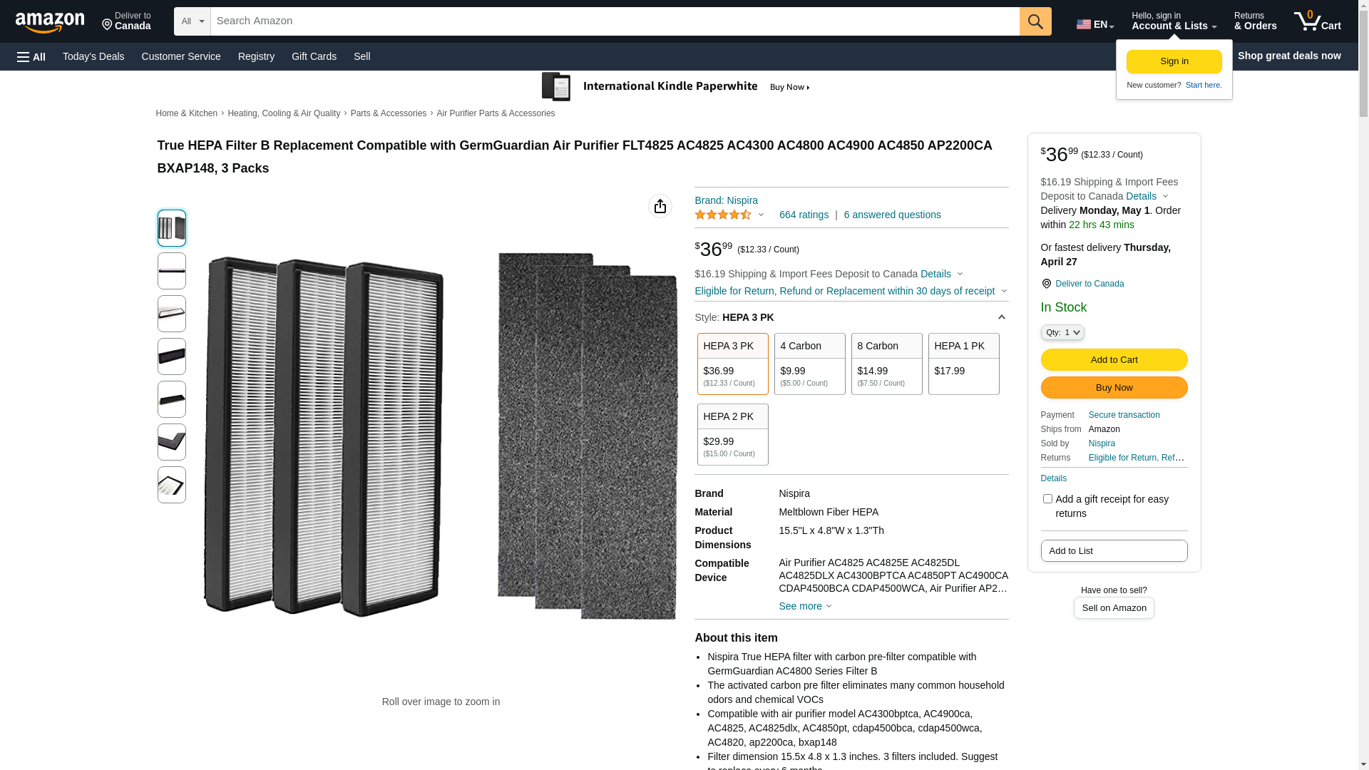| Feature | NISPIRA True HEPA filter with carbon pre-filter. Replacement for GermGuardian AC4800 Series Filter B |