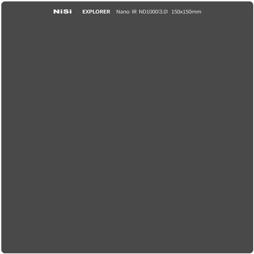 The NiSi Explorer Collection 150x150mm Nano IR Neutral Density filter - ND1000 (3.0) - 10 Stop is part of our Explorer Series for made for adventure. The filters feature a special glass hardening process that makes them double the strength of a typical glass filter. The Explorer series are much less prone to accidental breakage and perfect for active photographers.<br />Neutral density (ND) filters uniformly reduce the amount of light entering the lens. ND Filters can enable greater motion blurring and image detail by allowing a large aperture and a slow shutter speed. ND filters are also helpful when the contrast between the highlights and shadows is too high to get a quality exposure. The ND1000 10 Stop is used during the day outside of golden hour as the bright ambient light requires much more ?light blocking?. These can prolong exposures for up to 5 minutes during golden hour with the appropriate settings.<br />NiSi ND filters do not affect the coloration of the image, offer a true to life color, and are made from high-quality optical glass (not resin) with nano coating to prevent losing any single bit of detail. By using neutral density filter the camera is vulnerable to infrared light which will cast the unwanted red color to the photos when shooting at a small aperture. NiSi ND filters have an infrared protection coating layer to eliminate the infrared light through the lens to bring back the natural true to life color.<br />The NiSi Explorer Collection is made from B270 tempered glass. It features the same Nano coating process as our optical glass filters. This filter is tempered and hardened making it much less prone to accidental damage but this does not mean it is unbreakable. After a long period of time, the hardening may decline.