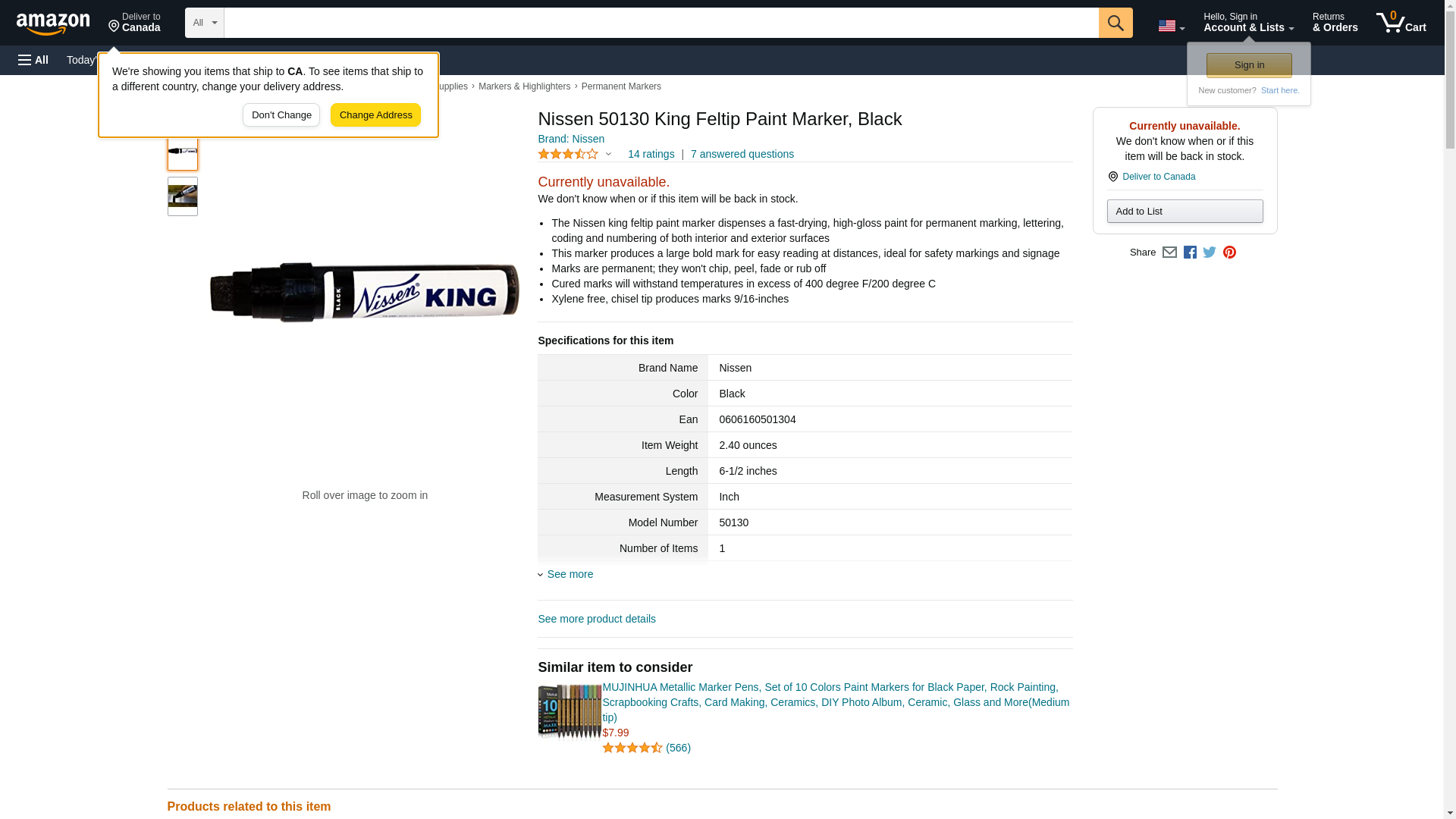 Nissen 50130 King Feltip Paint Marker, Black. The Nissen king feltip paint marker dispenses a fast-drying, high-gloss...