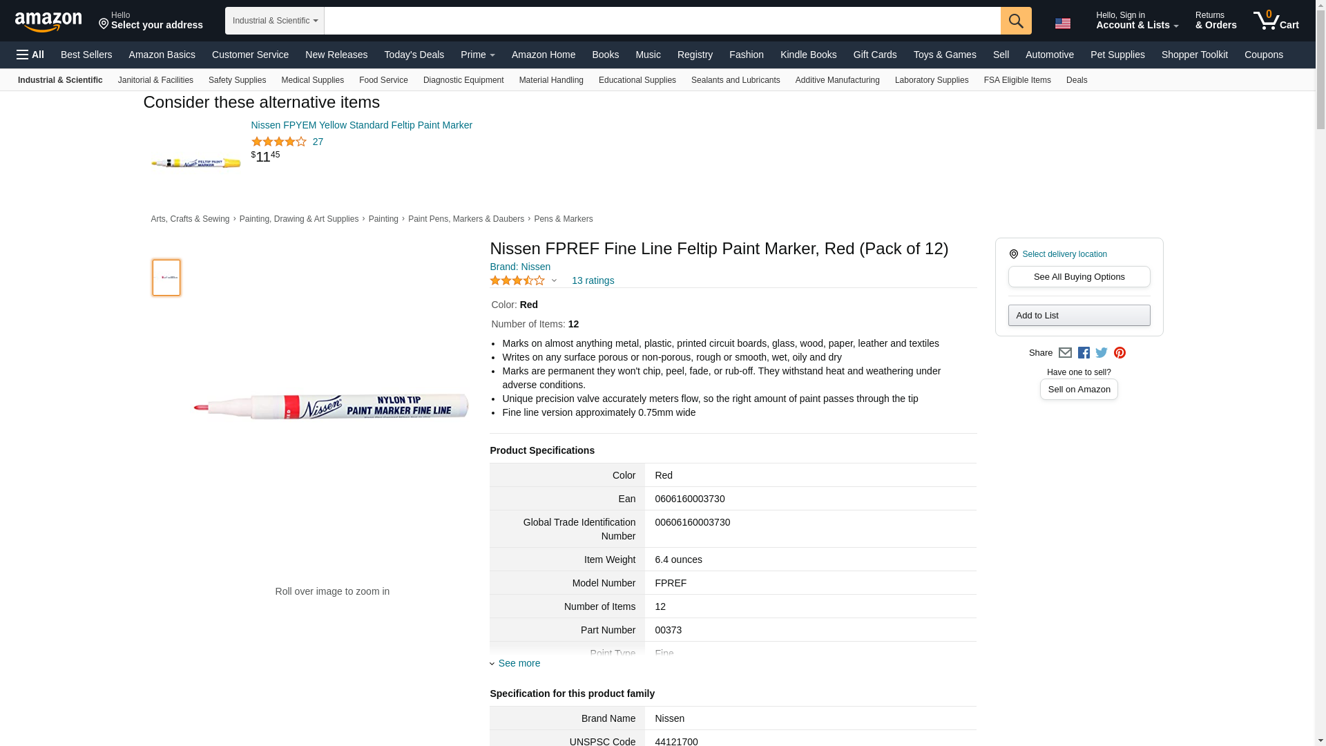Nissen FPREF Fine Line Feltip Paint Marker, Red (Pack of 12)