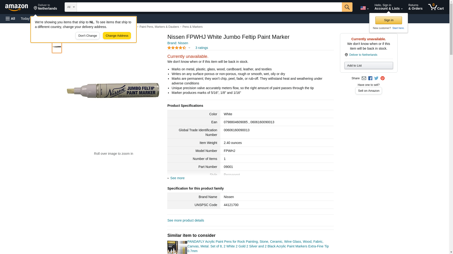 Nissen FPWHJ Jumbo Feltip Paint Marker, White