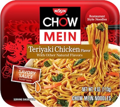 Nissin Chow Mein Teriyaki Chicken Ramen Noodles, 4 oz., 8 Bowls/Carton (08279) | Quill.com