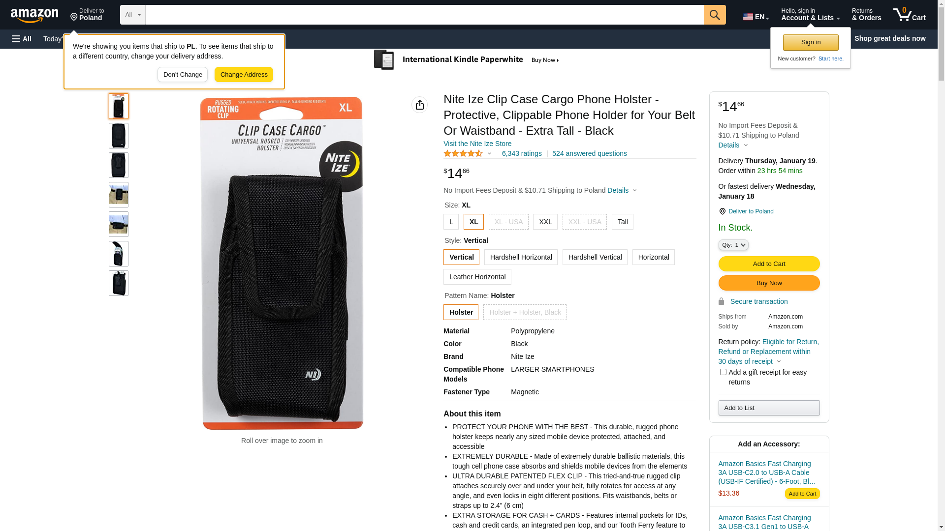 Nite Ize Clip Case Cargo Phone Holster - Protective, Clippable Phone Holder for Your Belt Or Waistband - Extra Tall - Black
