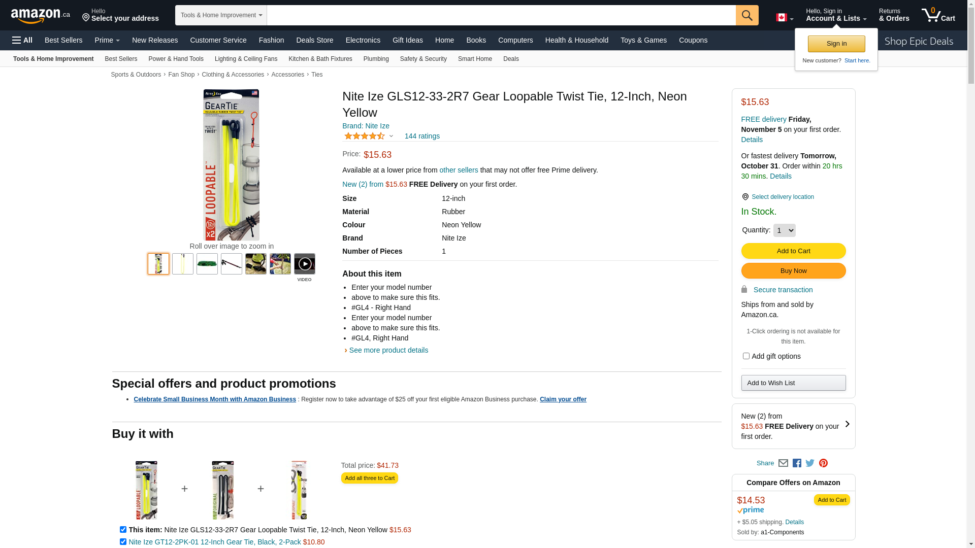 Nite Ize 2-Pack Gear Tie Loopable Twist Tie, 12" - Neon Yellow (2-Pack)