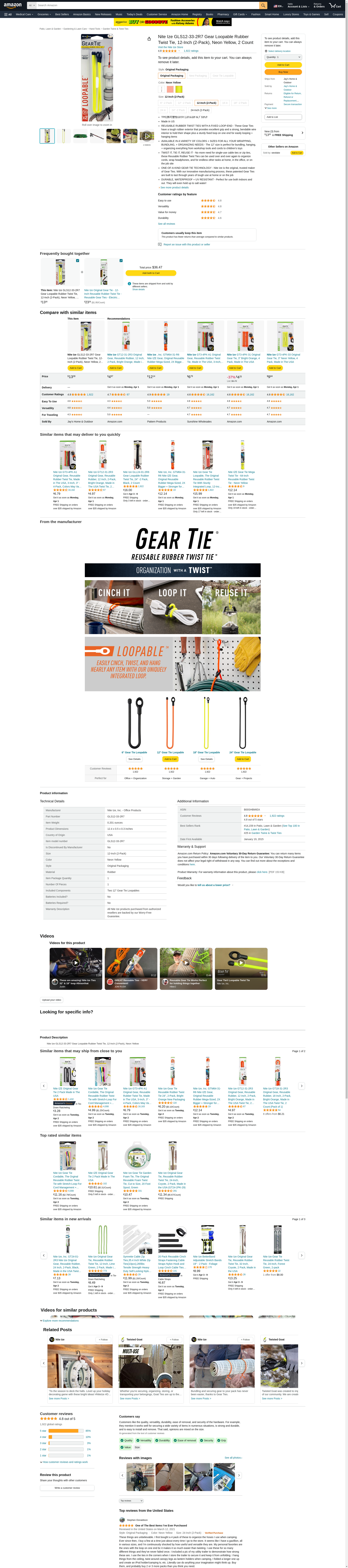 The Gear Tie Loopable Twist Tie features a strong wire inside that holds its shape and a tough rubber shell that provides excellent grip. With an integrated loop on one end, it allows you to cinch, twist, store, and hang nearly anything for convenient storage and access.<br/>With its strong, bendable wire interior and durable, ridged rubber exterior, our Gear Tie 12" Loopable Twist Ties grip, wrap, and secure most smaller items - like charge cords, USB cords, and headphone cords - hundreds of times in hundreds of ways. The added feature of an integrated loop on one end allows you to thread the other end through it and pull to cinch and organize nearly anything. Then twist the other end around a handle, zipper pull, anchor point, or key ring. You can also use the loop to hang it from a small hook or tie a line through the hole for quick connections. Two or more Gear Ties can also be looped together to create a chain of any length - the configuration possibilities are as endless as the number of little things it will organize, hang, connect, attach, and carry for you.