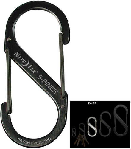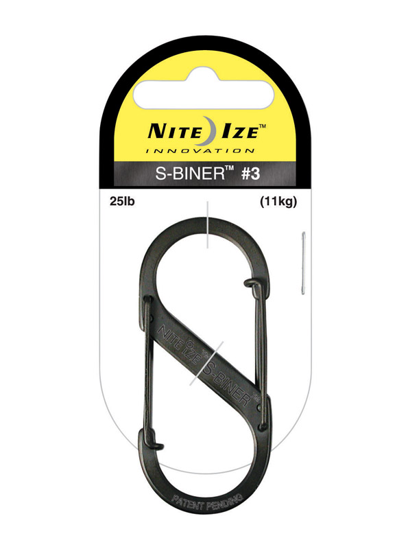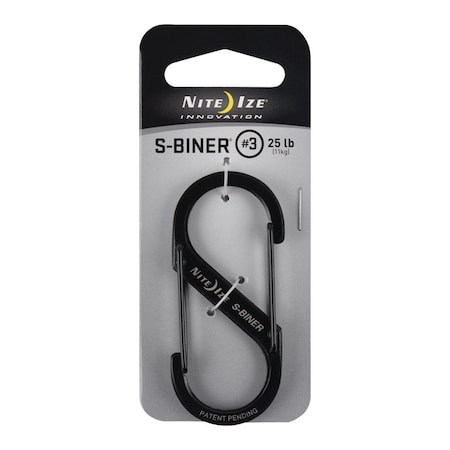 Nite Ize SB3-03-01 S-Biner, Size 3, Black Nite Ize, Inc., based out of beautiful Boulder, Colorado is the leading manufacturer of innovative accessories in the United States. Nite Ize began by manufacturing a line of accessories designed to expand the versatility and usability of flashlights, and has more recently expanded their product line to include Mobile Accessories, L.E.D. Accessories and Hardware Accessories. S-Biner, 2.63 in. long. Smooth wire gate operation. Stainless steel, black. Load limit 25 lbs. Nite Ize SB3-03-01 S-Biner, Size 3, Black Features: Size: 2-5/8" x 1-1/8" Smooth wire gate operation Stainless Steel, Black Load Limit: 25 lbs Made In: China * Warning: Not for use where disengagement could result in bodily injury or property damage. NOT FOR CLIMBING