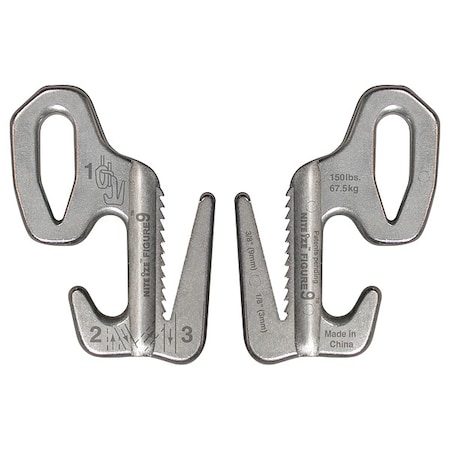 Figure 9 Large,If you've ever had problems with losing tension in your rope while tying a knot, or wasted time untying a difficult knot, here's your hassle-free solution. Our innovative Figure 9 tightens, tensions, and secures ropes without knots. The Nite Ize Figure 9 makes tightening any line a stress-free task. From tying awkward objects to the back of a truck or vehicle to organizing tools or items in the garage, this handy tool secures large loads quickly and keeps tension where you need it. Loop your rope through its strategically designed prongs, pull it tight, and it stays that way. A smart alternative to complicated cam tensioning devices and bungee cords, our Figure 9 also controls the release of high tension, avoiding sudden and dangerous unloading. Product Details, Two attachment methods for ultimate versatility, <dd>Loop System, <dd>Fixed End System</dd>, Laser engraved instructions ensure ease in operation, Lightweight, strong aluminum construction, Fits rope sizes fits rope sizes 1/8" (3mm) to 3/8" (9mm), Load Limit: 150lbs (67.5kg), Product weight: 1.1oz (30.8g), Product dimensions: 2.25"W x 3"H x .25"D (56 x 76 x 8mm). Warning: Not for use where disengagement could result in bodily injury or property damage. Not for climbing. Manufacturer is not responsible for loss, injury, or damage due to improper use of product. Inspect product and rope prior to use. DO NOT EXCEED stated load limit (150lb / 67.5kg) of product or rope, whichever is less. Manufacturer makes no guarantees concerning line, rope or cord not contained in this packaging. Avoid sharp edges, hot or abrasive surfaces, and shifting loads.