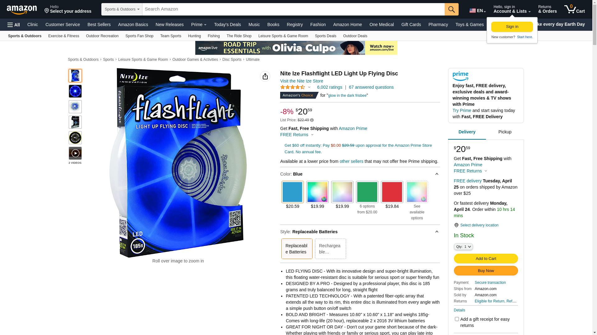 | Feature | LED FLYING DISC - With its innovative design and super-bright illumination, the Nite Ize Flashflight LED Light Up Flying Disc is suitable for serious sport and as a super fun flying disc toy. It even floats! |