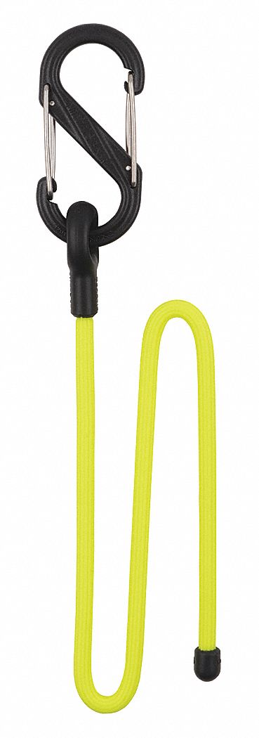 Clippable Gear Tie, Color Neon Yellow, Diameter 4.1mm, Material Rubber, Steel, Plastic, Includes Plastic S-Biner Size No. 2, Temp. Range -10 Degrees to 150 Degrees F