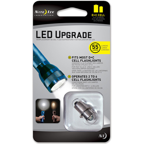 The Nite Ize LED Upgrade Kit converts most C/D (2-6 cell PR style flange) incandescent flashlights into bright, long lasting (100,000 hour) LED flashlights. It's as easy as replacing the bulb - instantly, your flashlight will emit a pure white (as opposed to the incandescent dull yellow) light, in spot to flood focus. Self-adjusting for all capacity levels, this efficient LED technology also ensures a much longer battery life, making it not only a useful, versatile improvement, but an environmentally-friendly and pocketbook-friendly one as well.
