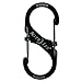 | Feature | LOCKABLE DUAL CARABINER - this "S" shaped stainless steel carabiner has two gates with sliders to lock them in place, so you can securely clip valuables like keys to one side, then clip the other side to your backpack, belt loop, or pocket. |