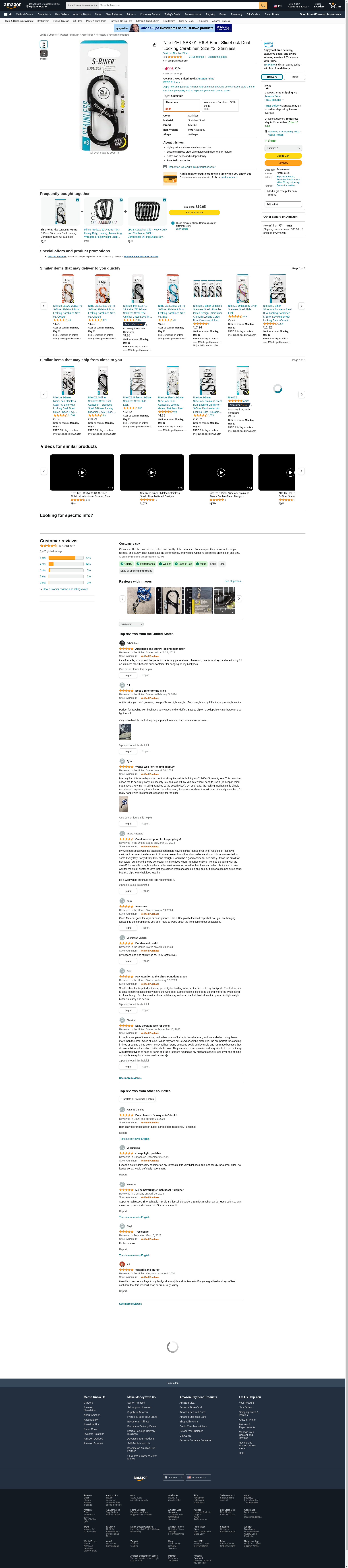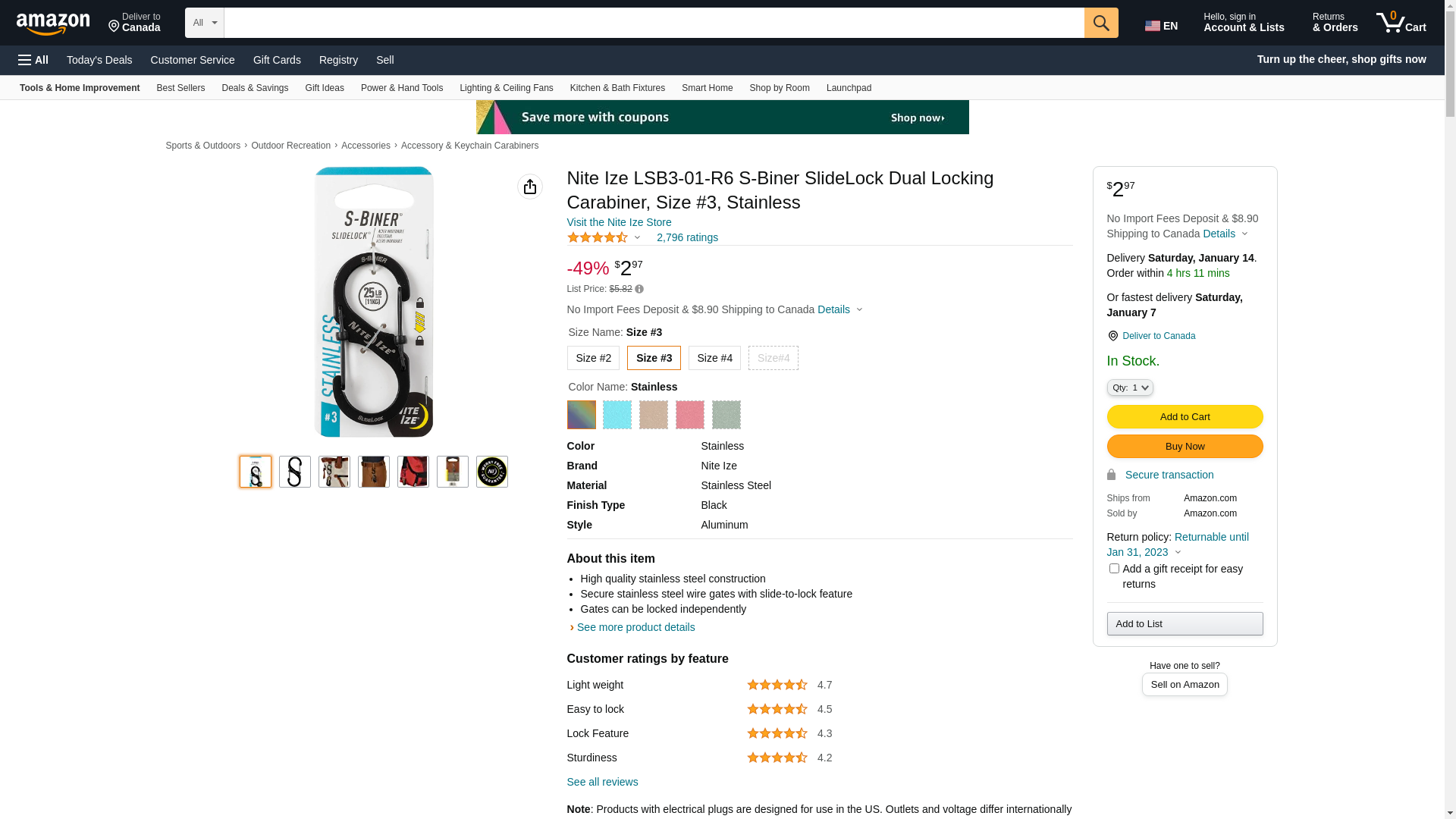 Nite Ize LSB3-01-R6 S-Biner SlideLock Dual Locking Carabiner, Size #3, Stainless