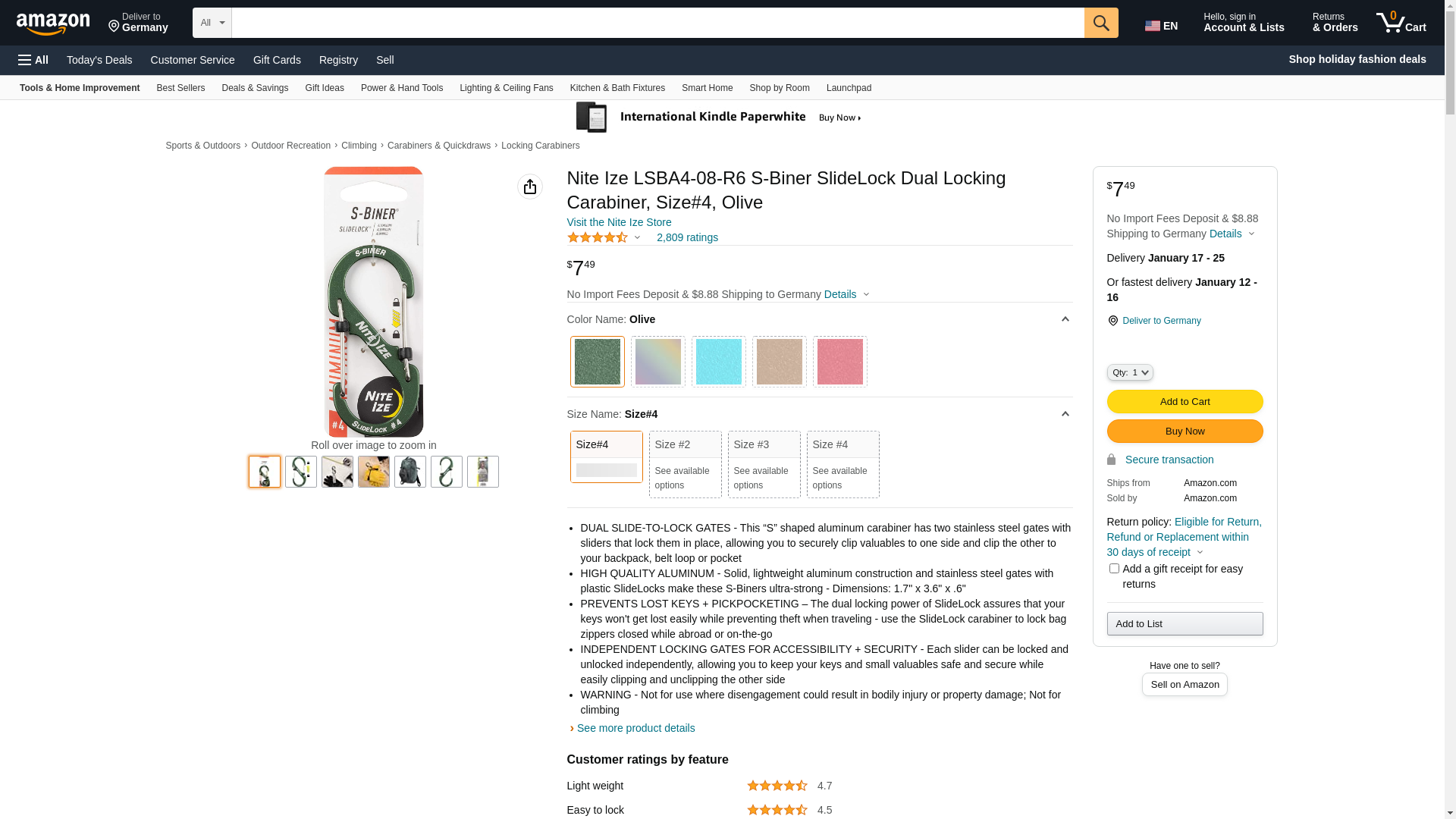 Nite Ize LSBA4-08-R6 S-Biner SlideLock Dual Locking Carabiner, Size #4, Olive