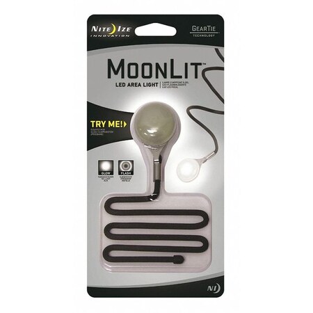 <p><b>MoonLit - LED Area Light</b><br><br>The Nite Ize MoonLit can be used and reused in countless configurations - it's an easy, handy way to shine ambient light from almost any angle. We've connected our famous SpotLit to a bendable, durable 18" Gear Tie, using a slimline stainless steel crimp connection. The long-lasting LED has two functions - steady glow and continuous flash - and emits light bright enough for reading fine print. Bend, wrap, or twist the MoonLit around tree limbs, tent poles, bed posts, or make a loop at one end and hang it from a hook for steady ambient overhead light. Set in flash mode and wrapped around bicycle handlebars, backpack straps, or even your arm, the MoonLit keeps you safely visible in the dark. Water-resistant, long-life, replaceable batteries included.<br><br><b>Features:</b><br></p><ul> <li>Bright White LED Area Light on the end of an 18" Gear Tie Reusable Rubber Twist Tie<br> </li> <li>Weather resistant<br> </li> <li>Push button switch<br> </li> <li>Glow and flash modes<br> </li> <li>Battery run time: Glow mode: 20 hours | Flash mode: 25 hours<br> </li> <li>Easily replaceable 2 x 2016 3V lithium battery included<br><b>Gear Tie Technology</b><br> </li> <li>Tough rubber shell provides excellent grip but won't scratch or mark<br> </li> <li>Strong internal wire that holds its shape<br> </li> <li>Quick and easy to securely attach and detach<br> </li> <li>UV resistant - will not be damaged by extended sun exposure<br> </li> <li>Product Dimensions: 5.2" x 3.1" x .86" (132mm x 79mm x 21.9mm)<br> </li> <li>Product Weight: 29g /1oz</li> </ul> <br>Brochure (pdf)