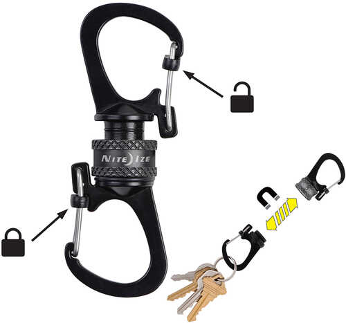- Dual slidelock carabiners joined by magnetic locking collar