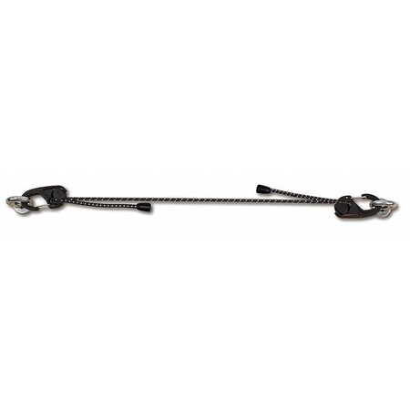 | Feature | <b>Price For:</b> Each <b>Item</b>: Bungee Strap <b>Length</b>: 14" <b>Width</b>: 2-5/16" <b>Color</b>: Black <b>Hardware Material</b>: Steel <b>End Type</b>: Camlock <b>Body Material</b>: Rubber/Polypropylene/Nylon <b>Diameter</b>: 1/16" <b>Country of Origin (subject to change)</b>: China |