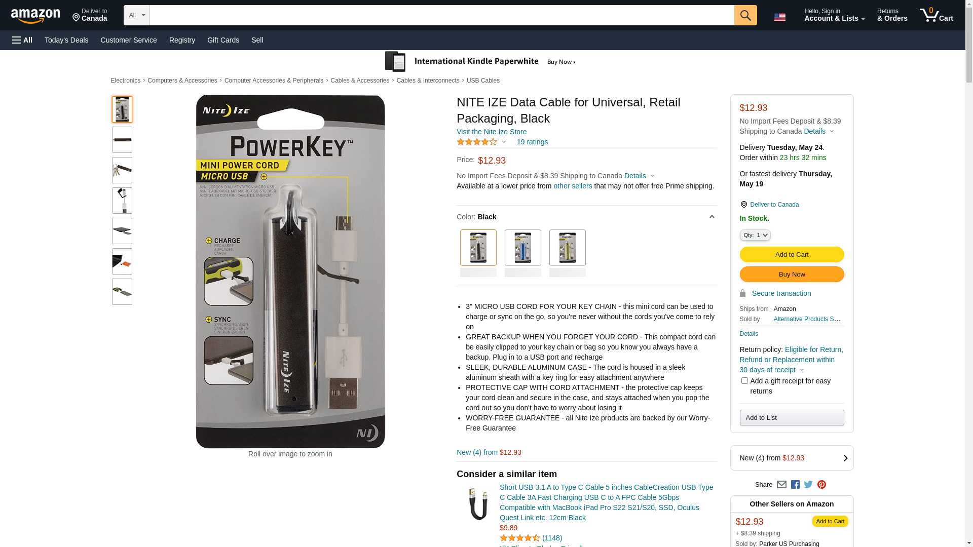NITE IZE Data Cable for Universal, Retail Packaging, Black