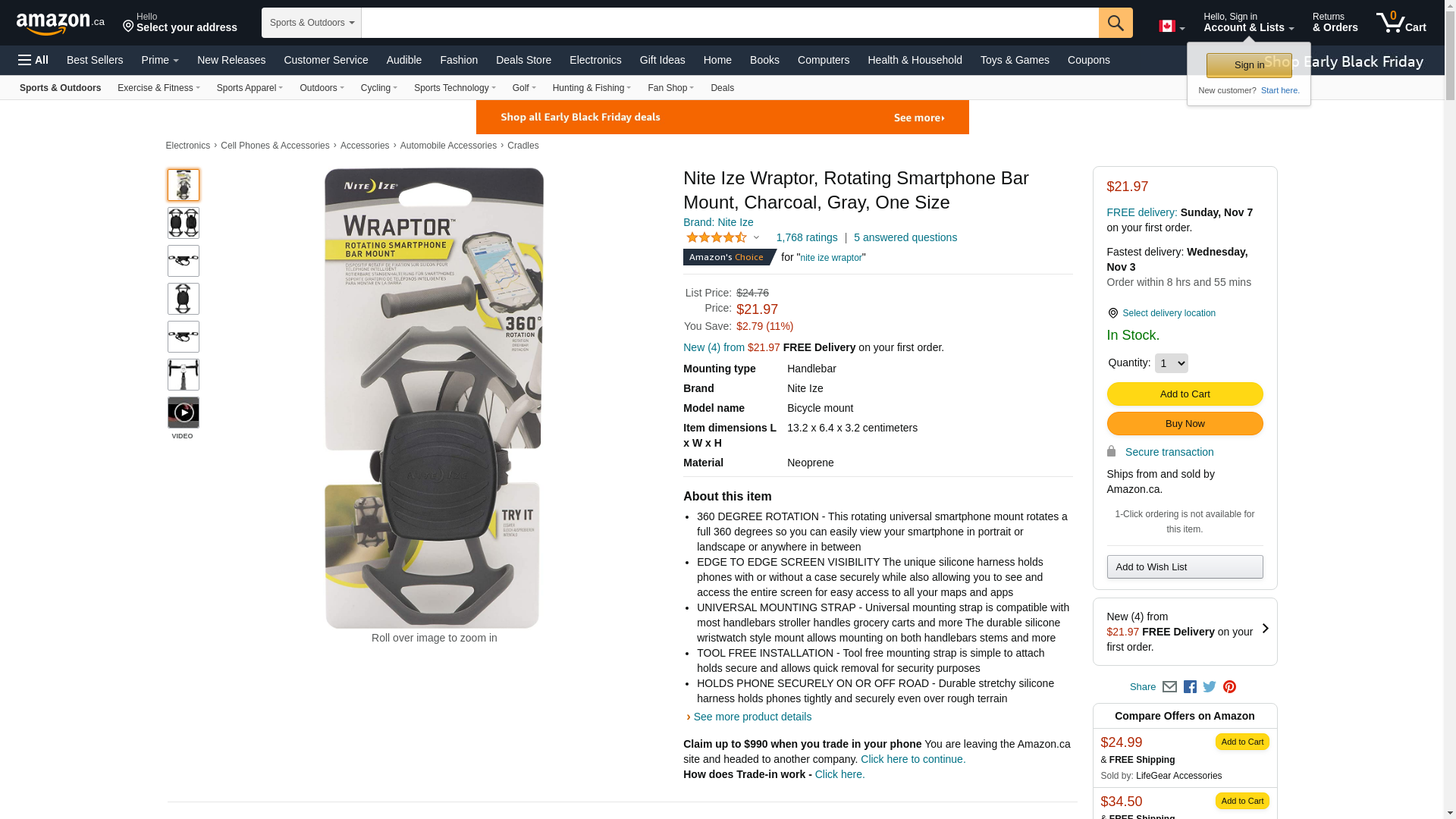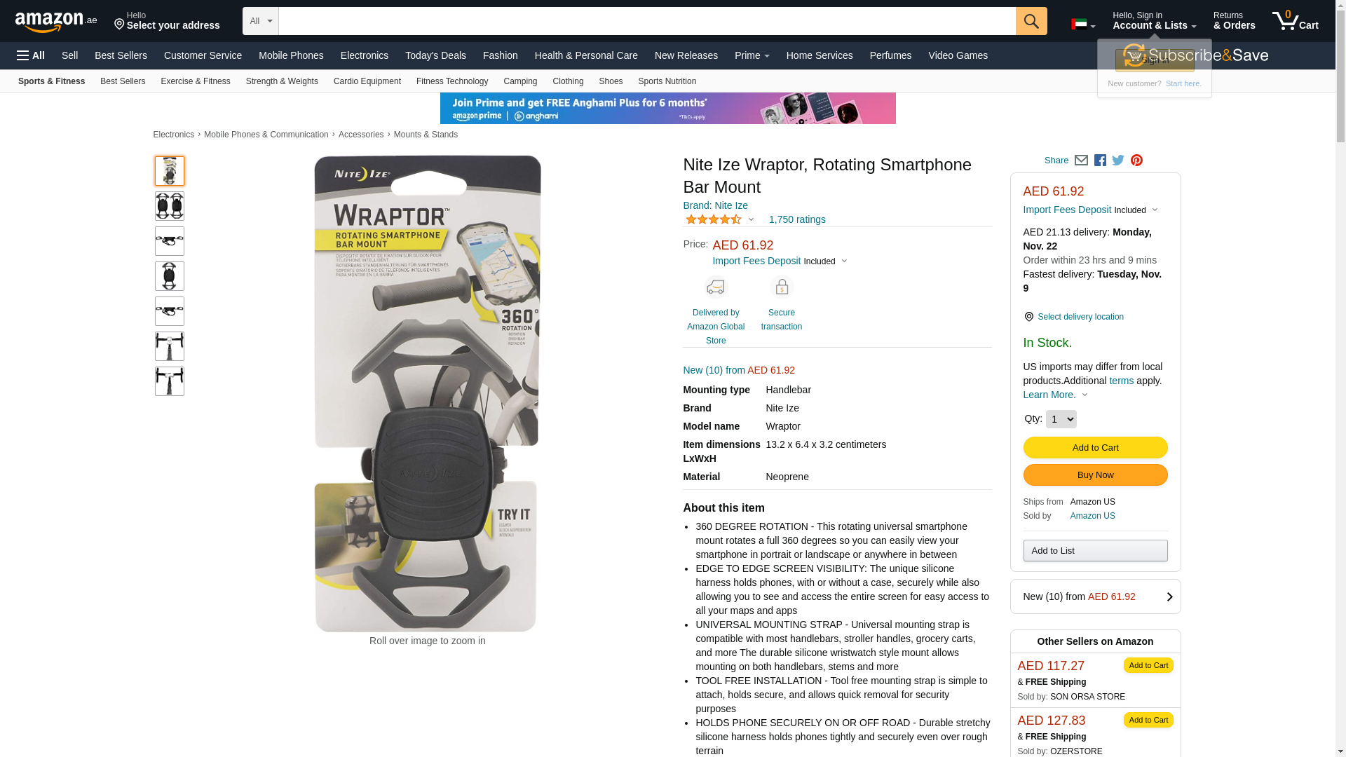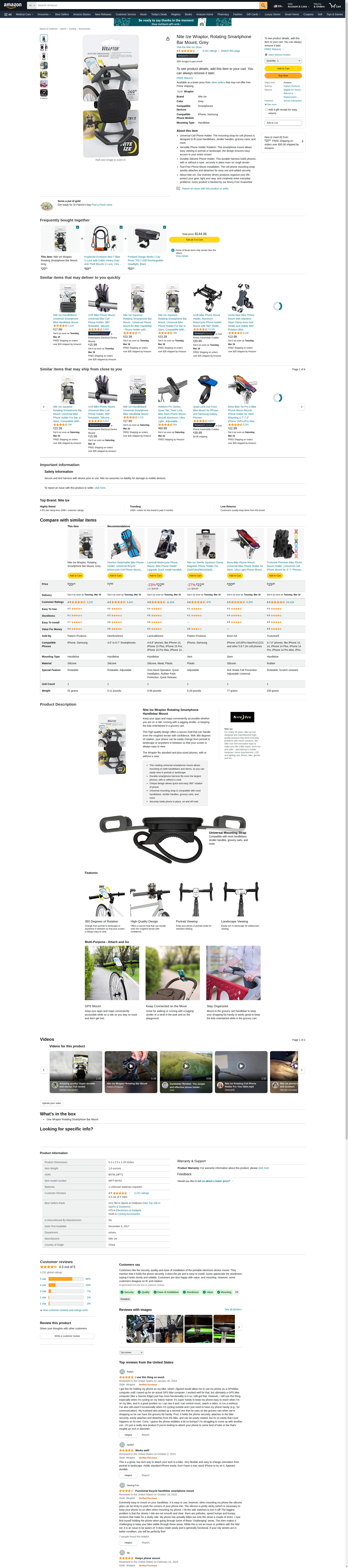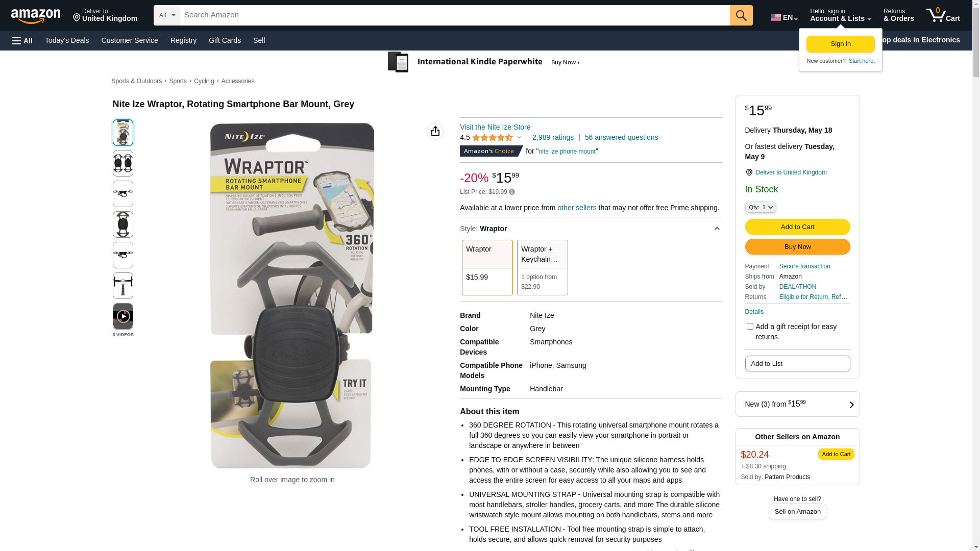Nite Ize Wraptor, Rotating Smartphone Bar Mount, Grey